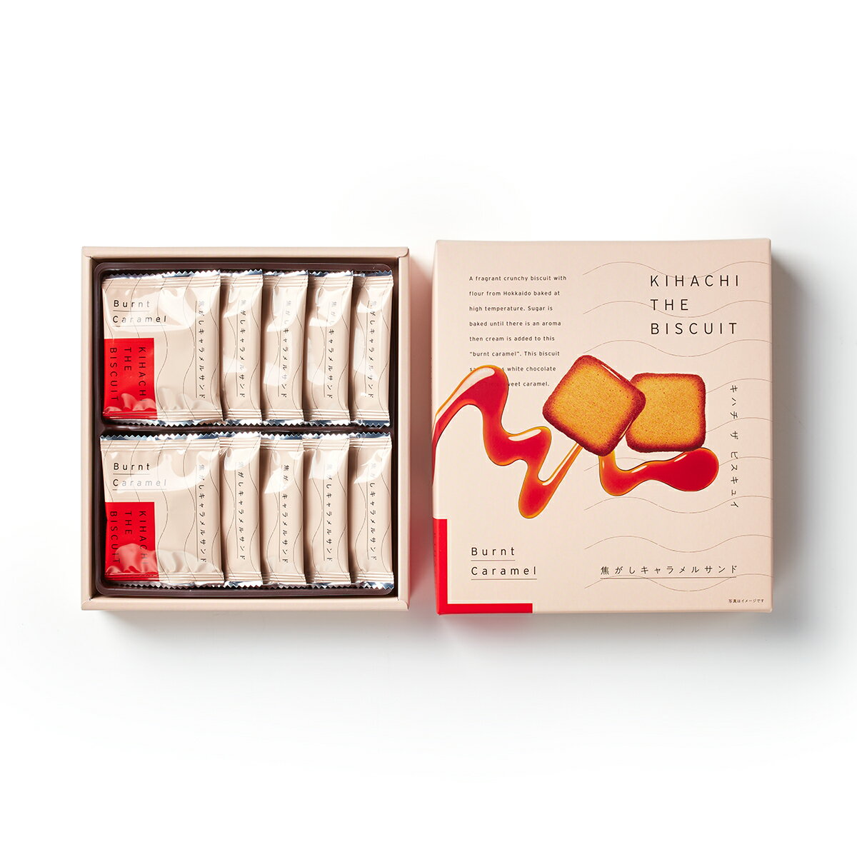 要エントリー! 砂糖を香り立つまでしっかり焦がし、クリームを加えた「焦がしキャラメル」と北海道産の小麦粉を合わせ、高温で焼き上げた香り高く、サクサクとした食感のビスキュイ。